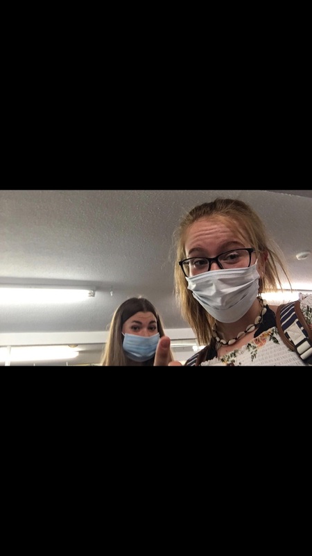 At first, I didn't think much of it. It wasn't too bad when I found out about it, but the virus was getting progressively worse. As we were leaving school for spring break, I expected to go back to school the following week. That is not what ended up happening. Cases were increasing, but I still wasn't very worried. I mainly focused on it being a risk mostly for older people, but younger people starting catching the virus. I never left my house except to go grocery shopping with my mom. My family didn't really take any precautions, we expected it to not affect us. My mom continued going to work when businesses starting shutting down for the time being. With being around the same people everyday, we didn't worry much. At the time, I was playing competitive volleyball. I still had about five or six tournaments left, but they all got cancelled. We were not able to make up the rest of the season, which was definitely upsetting. There ended up being a big party just outside of the town I lived in, and there were about 300+ people from my school and surrounding schools. It was not too long after restaurants and stores started opening back up along with sports activities. A lot of people ended up receiving the virus, leading to some restaurants to close one again. A lot of people from my school's cheer team had to be quarantined. Sports were once again shut down, waiting until the week before school started to start back up again. I was still involved in a summer league volleyball team, but we took precautions. We sanitized, didn't come in contact with the other team, and the spectators wore masks. It wasn't too much different, but school volleyball is going to be much different. There are a certain amount of people each player can invite, we have to wear masks on the bench (and while playing depending on where we are), and of course, spectators have to social distance and wear masks as well. During school when social distancing of 6 feet is not available, we are required to wear masks. There was an option of doing online school, or going in person. This is a picture of my friends and me during history class.