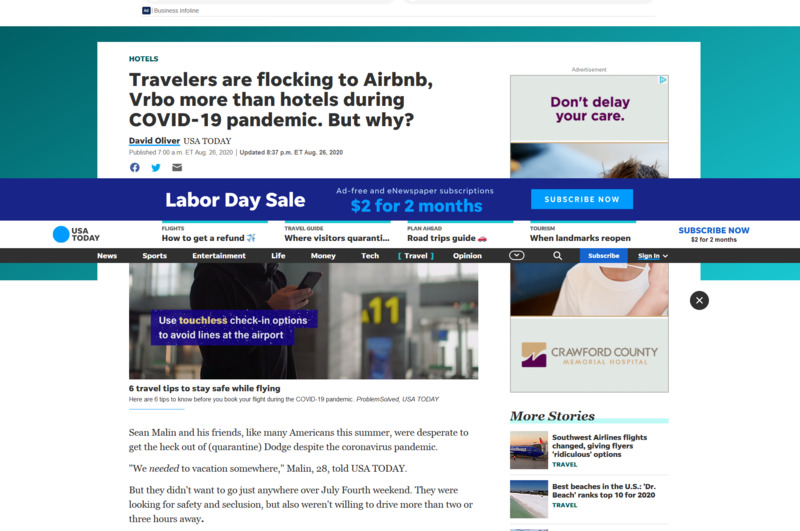 This article claims that people are so desperate to go on summer vacations that they are flocking to AirBnBs and Vrbo spaces. I see importance in this article because it shines light to the ways people are finding loopholes to social distancing and closed boarders. Many people need to get away for their mental health, and some use these opportunities to throw parties and blatenly break the rules. What ever their reasons may be this article highlights the surge in AirBnB and Vrbo usage.