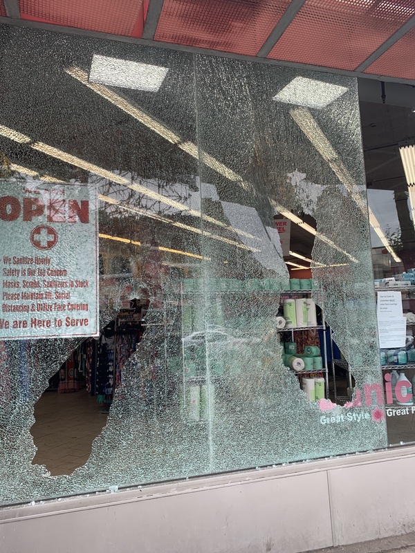 I took this particular photo because I found it interesting that these already struggling, local shops were looted and were tied to the protests by the media. I did not feel as though these specific actions were tied to the protests however, I do see looting as a valid form of protest when they are targeting big/chain brands and businesses. It was sad to see my neighborhood in this condition. These photos were taken in early June 2020.