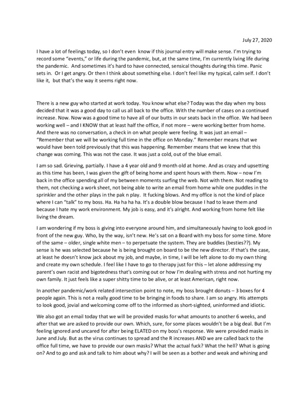 This is a journal entry on how I'm feeling about having to return to the office full time.