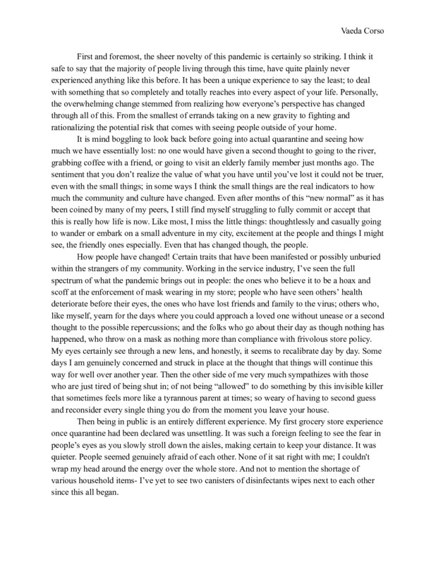 I submitted how the Corona Pandemic has helped change my life for the better.