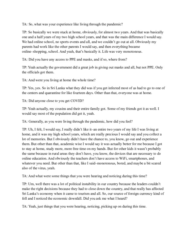 It provides the pandemic perspective of a student from Colombo, Sri Lanka.