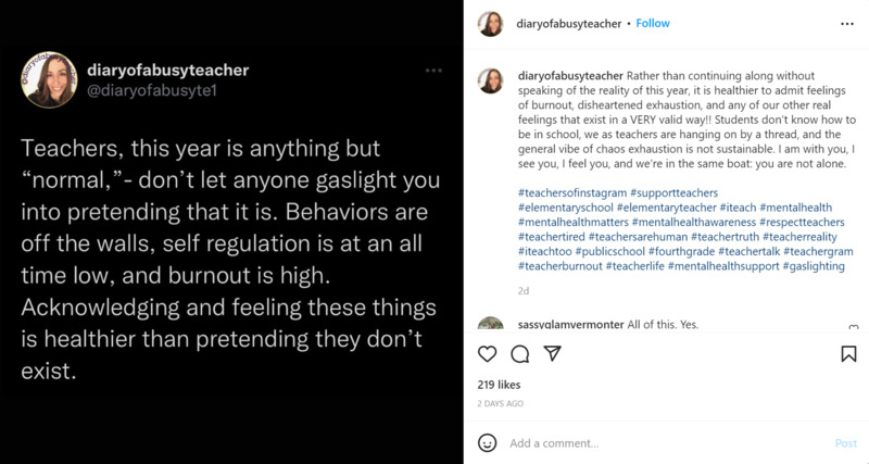 This item is a screenshot from a Twitter account known as the Diary of a COVID Classroom Teacher.