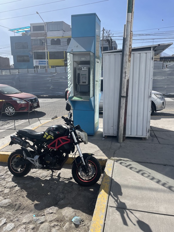 While walking my daughter home from school I noticed this disposable mask next a motorcycle in Arequipa. It was about one block away from Av. Kennedy.