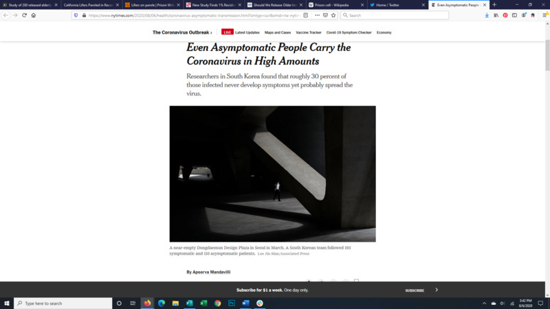This article discusses the findings of a report recently published in the Journal of American Medical Association explaining that asymptomatic carriers of Covid-19 carry as much virus in their nose and mouth as those with symptoms for about the same length of time. While previously the knowledge on asymptomatic spread was more anecdotal this study offers more direct evidence.