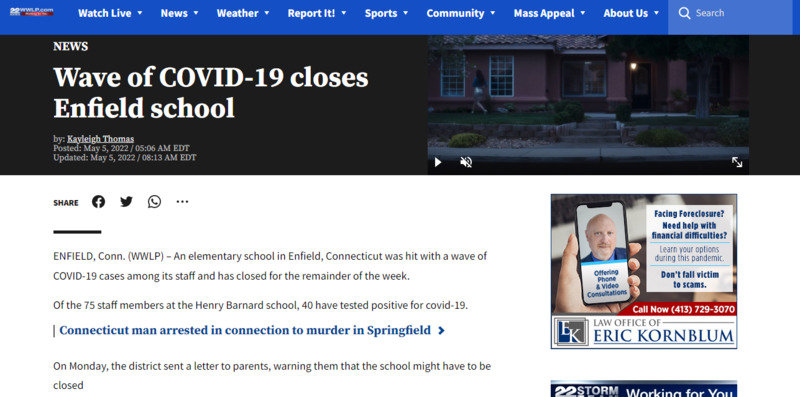 This is a news story by 22 News by Kayleigh Thomas. This is about a school that was forced to close down due to rises in COVID cases. Of the 75 staff members, 40 have tested positive. On Monday, a letter was sent telling parents about the school closure.