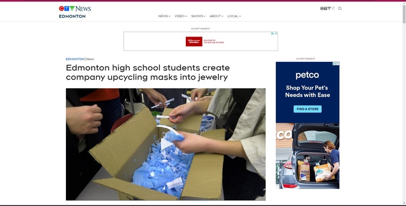 This is a news story from CTV News by Adam Lachacz. A group of students from Lillian Osborne High School have formed a company to make use of disposable masks so that less of them end up in landfills. The company is called "Gaia" after the Greek goddess of the earth. The company is selling necklaces and earrings made from disposable masks online.