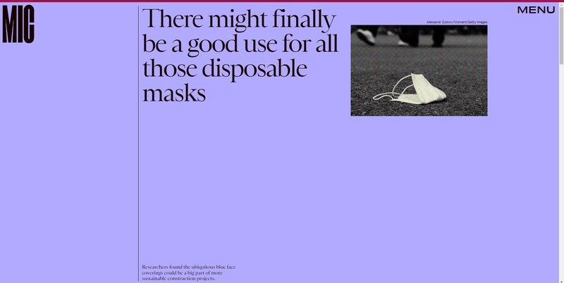 This is a news story from Mic by AJ Dellinger. A new study published in Material Letters has found that disposable masks could be used to help strengthen concrete. The concrete has tested out as 47% stronger than concrete than did not contain traces of masks.