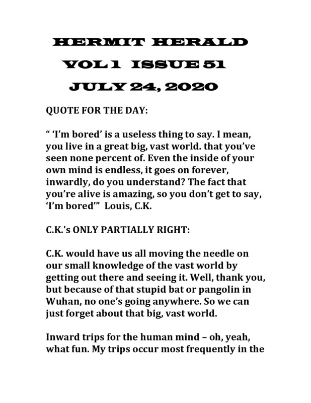 Chris Bateman's first entry for his 'Geezer's Diary' articles for the Union Democrat, the local newspaper for the small town Sonora, California. Chris discusses his children's concerns for his travel plans as COVID-19 really got into full swing in America in March, and how he started social distancing as a result of the pandemic.
