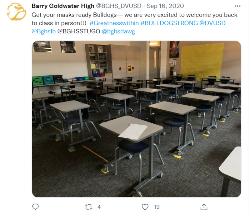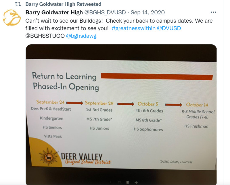 This is a screenshot of a Twitter post originally posted by a high school in the Deer Valley Unified School District in Phoenix, Arizona.