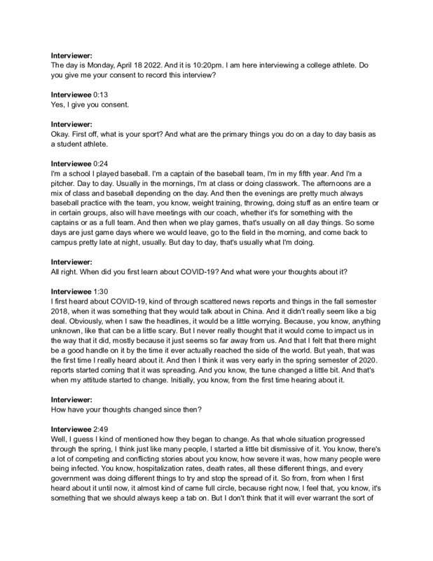 This audio interview discusses life as a college athlete during the covid-19 pandemic.