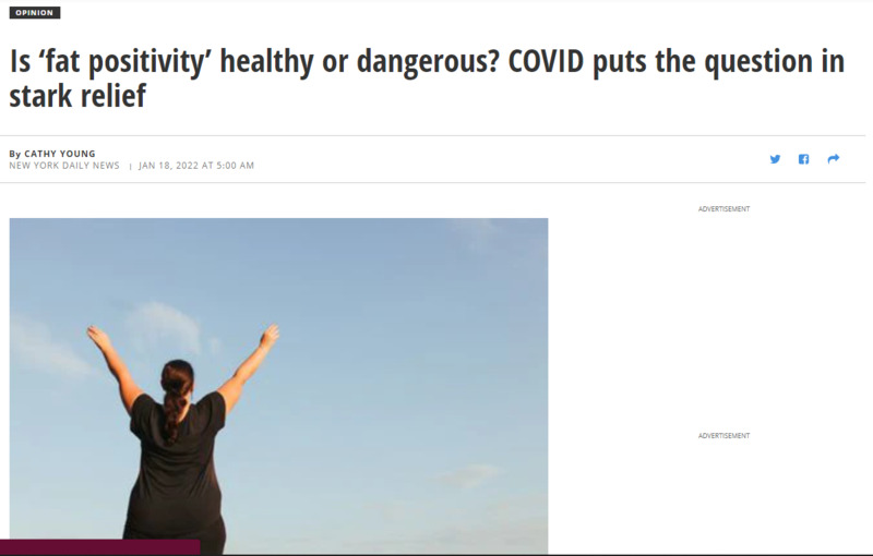 This is a news story from New York Daily News by Cathy Young. This is an opinion piece questioning what body positive activists have been claiming about obesity and COVID, with many claiming weight has little to no effect on recovering from COVID. Quoting the CDC, Young says that obesity puts people at greater risk of dying from COVID than those of normal weight.