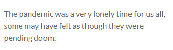 The pandemic was a very lonely time for us all, some may have felt as though they were pending doom.
