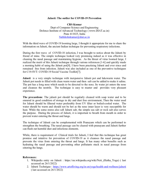 Jalneti, an ancient technique as preventive measure for COVID-19.