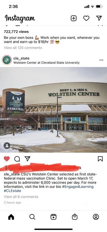 A screenshot of when my college announced that our basketball arena would house the first mass vaccination center in our state. I sent this to my family because I thought it was so cold my college got this opportunity. Most of my family got vaccinated here and it was so well run and easy!
