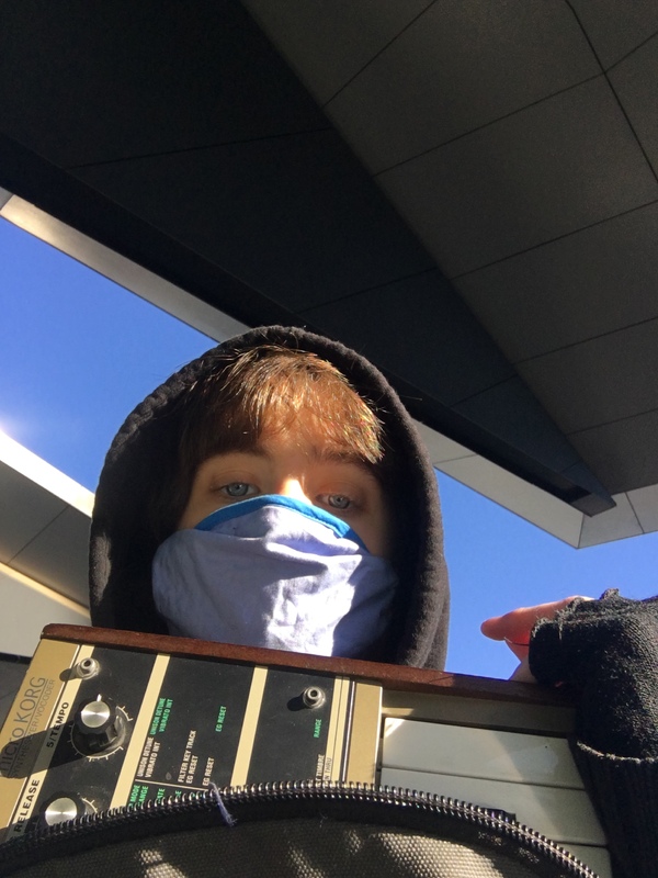 During the lockdowns in Naarm/Melbourne I was lucky enough to have access to a lot of musical instruments through my partner, who is a musician. I channelled a lot of my fear and worry into learning to play piano again, I had learnt as a child. I found this incredibly rewarding. It carried me through. Here’s me masked up with my portable synthesiser.