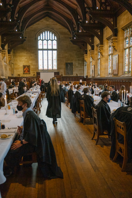 Pictured here is the 2021 Ormond College Scholar’s Dinner. This event has a long history at the College as a celebration of academic excellence. Yet in 2021 it looked a little different than in previous years. In this image you can see the hallmarks of the COVID-19 pandemic – mask wearing, seated social distancing and individual, single serve drinks. Nevertheless, many of the rich traditions of the College can still be seen – a formal hall, the use of the original dining hall and the wearing of academic gowns. There is both continuity and change within this image. In this, it gives insight into a tension felt by many during the pandemic – the desire to hold onto the past, but the need to be adaptive.