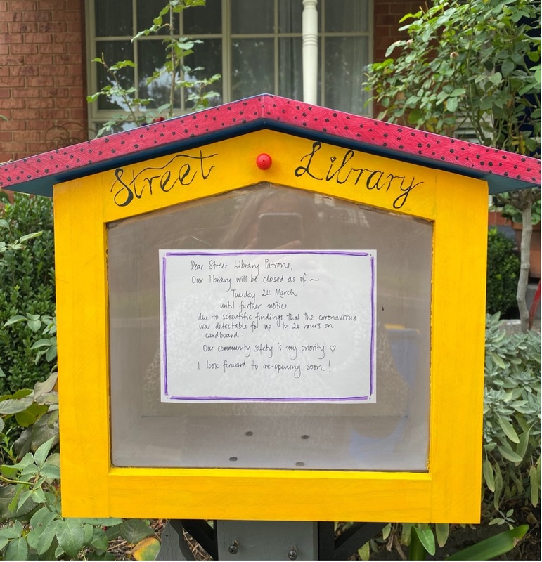 (HIST30060) This is a photo of the closed sign my Mum and I put on our street library after we found out about the pandemic in 2020. It reads: