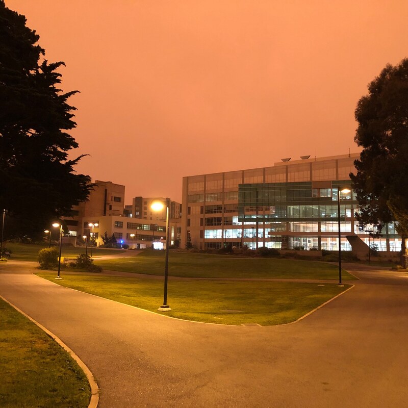The campus now remained silent and the smells of burritos and coffee were gone along with students walking to campus. The residents who used to sit outside and occasionally sat outside reading papers disappeared. The air while cleaner breathing because of the lack of air was soon polluted by the fires in California leaving a red mist that made the air smell like burnt wood.