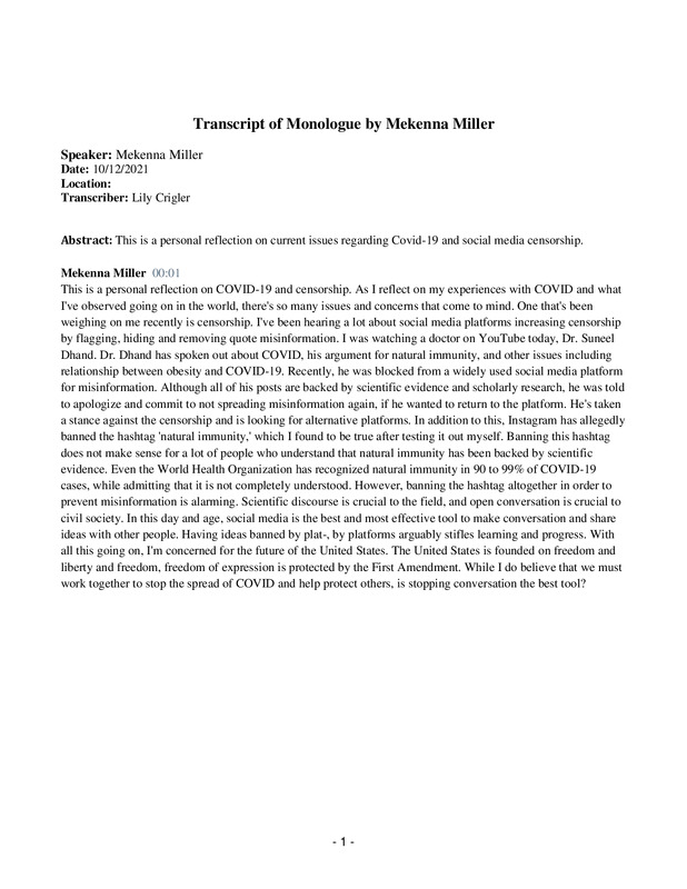 This is a personal reflection on current issues regarding Covid-19 and social media censorship.