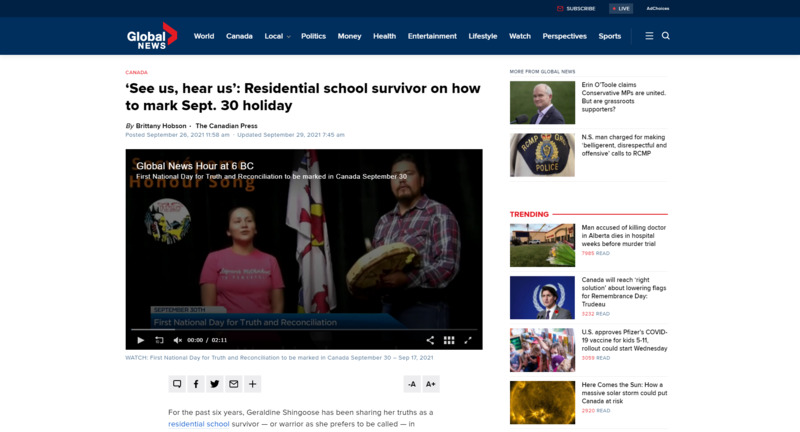 This is a news article documenting Geraldine Shingoose’s comments on how the new national holiday of Truth and Reconciliation must be observed; the article contains a video and conversations regarding how to teach children about Residential Schools in classrooms.