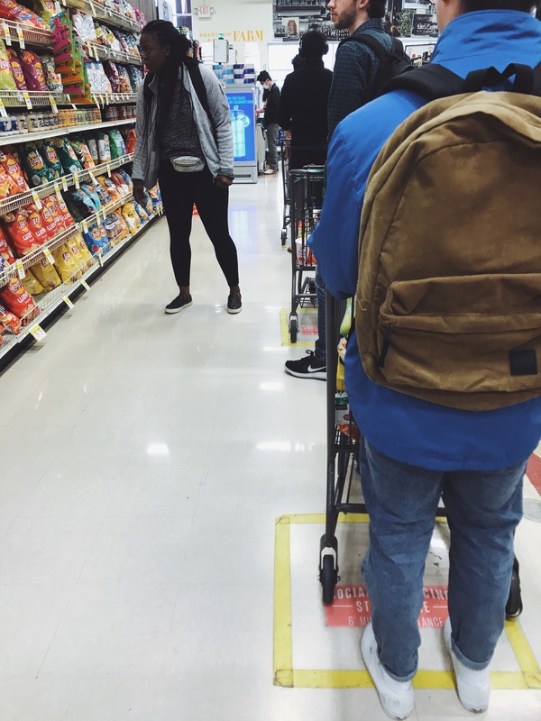 When covid-19 getting serious in April 2020, every store limits the capacity and people need to keep the social distance. It's my first time in life to see this beautiful and organized queue.