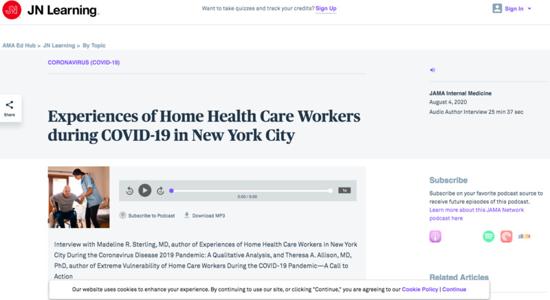 Interview with Madeline R. Sterling, MD, author of Experiences of Home Health Care Workers in New York City During the Coronavirus Disease 2019 Pandemic: A Qualitative Analysis, and Theresa A. Allison, MD, PhD, author of Extreme Vulnerability of Home Care Workers During the COVID-19 Pandemic—A Call to Action