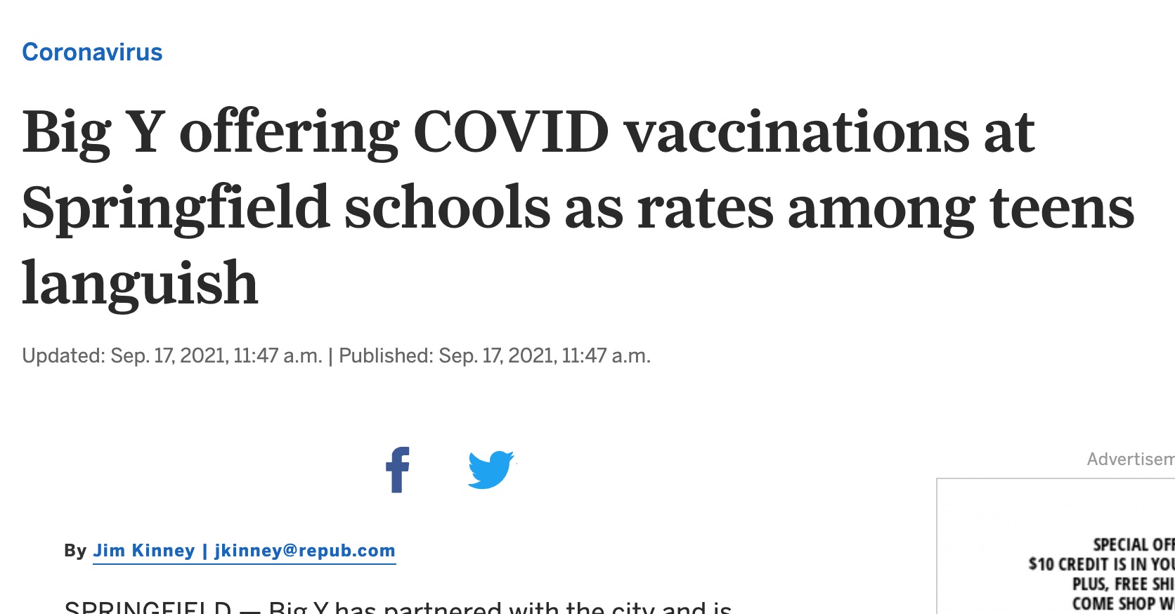 This MassLive article reports on the efforts of Big Y, a local grocery store chain in Massachusetts and Connecticut, to offer vaccinations to high school and middle school students in Springfield, Massachusetts.