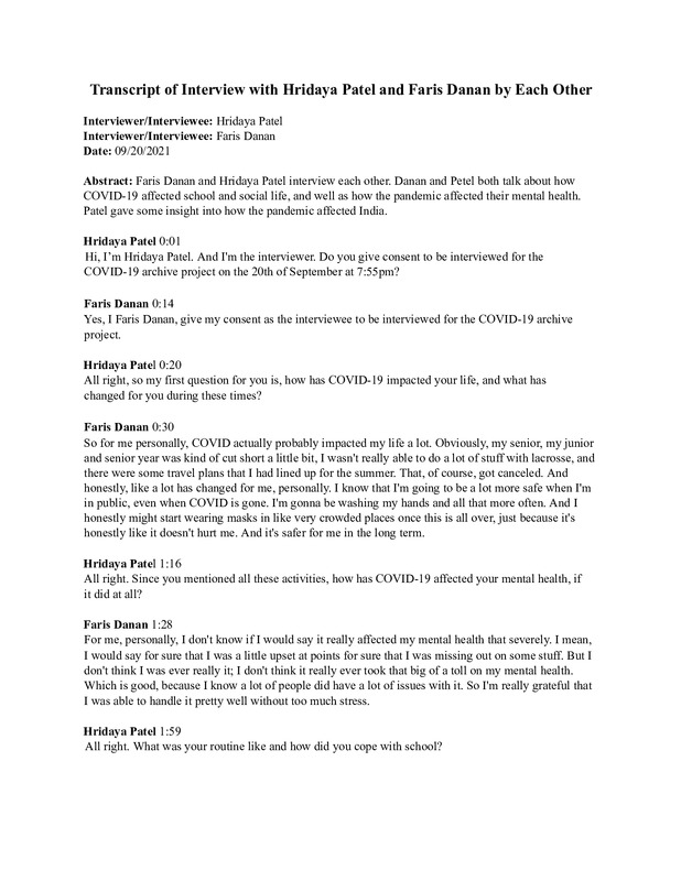 This is a casual interview about the effects of COVID on mental health, academics, family life, etc. We discuss the biggest impact COVID had on us, our experience with the pandemic, what we did over quarantine, and much more, from the perspective of college freshmen.