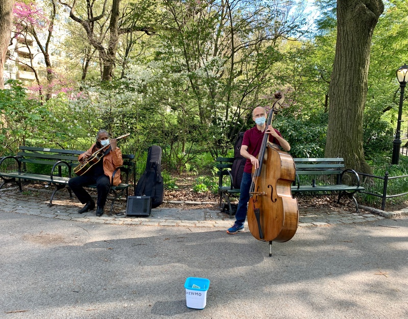 These photographs taken from April-June 2020 capture New Yorkers interacting with the empty stress of the city during COVID-19. The first image displays an off duty fireman walking down vacant 5th Avenue, apparently in tribute. His body position highlights the stress, grief, determination, and exhaustion experienced by so many New York frontline workers. The next image was taken of the once bustling streets of SOHO. In this photograph, an older man appears exhilarated during a moment out of quarantine. Getting some fresh air, he turned up his car radio and bellowed out the lyrics of “New York, New York”, the anthem for New Yorkers. The third image captures young cyclists riding, practicing tricks, and laughing. The final snap is of two jazz musicians near the entrance to Central Park, a spot they often inhabited pre-pandemic. They played exactly as they once did, only masked this time.