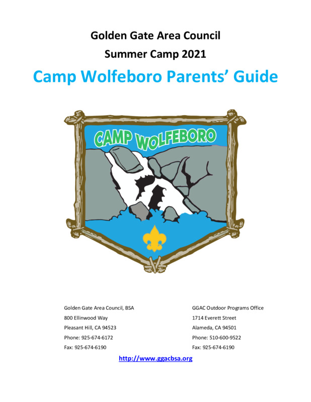 This is a guide for parents made by Golden Gate Area Council to inform parents about Camp Wolfeboro. The guide discusses the variety of changes made to camp for 2021 as a result of the pandemic, among other aspects of camp.