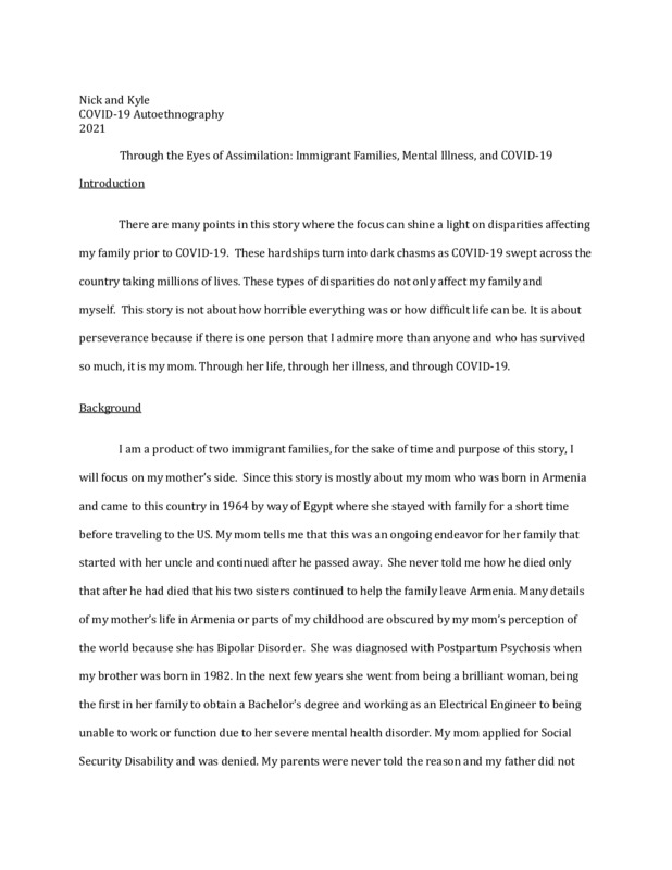 This story is about my partner's family, utilizing both of our perspectives to talk about how his mother, and subsequently my partner, was treated due to mental illness, ethnicity, and gender identity.