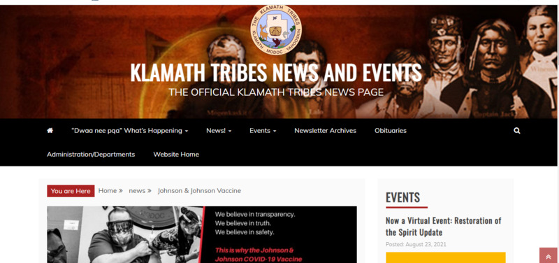 The Klamath Tribes stopped administering the J&J vaccine on April 9, 2021 after concerns of major side effects, a few days before the FDA and CDC paused administering of the vaccine.
