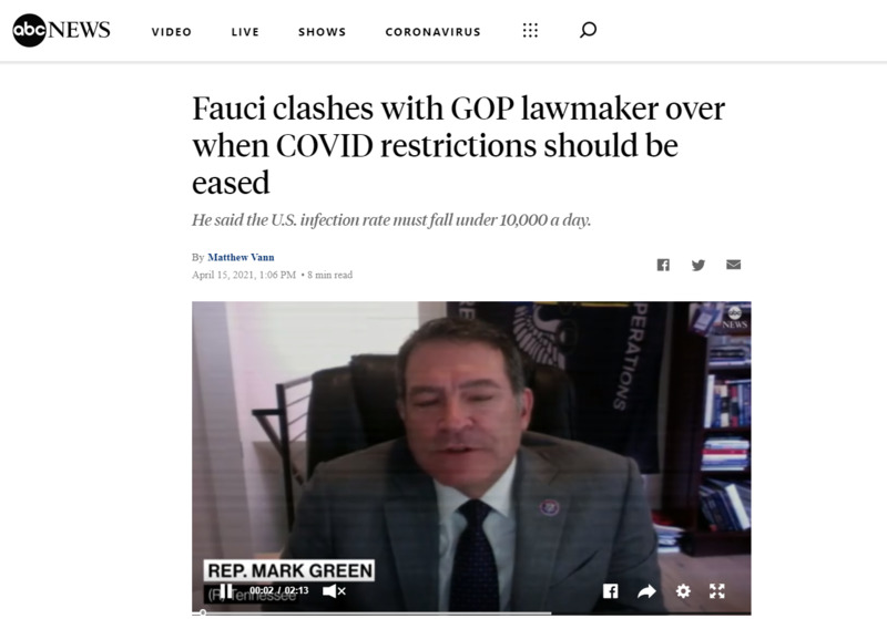 Dr. Anthony Fauci, pressed by a Republican lawmaker Thursday over when Americans will "get their liberties back," gave his clearest explanation yet as to when COVID-19 restrictions could be safely lifted, saying the U.S. must get its infection rate under 10,000 new cases a day.