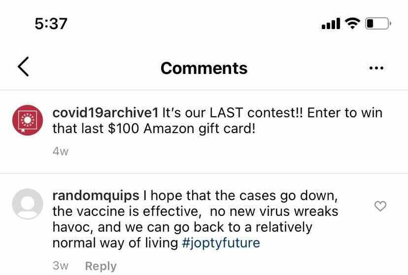 A final section asks visitors to provide feedback on the exhibit, its content, and the pandemic in general.