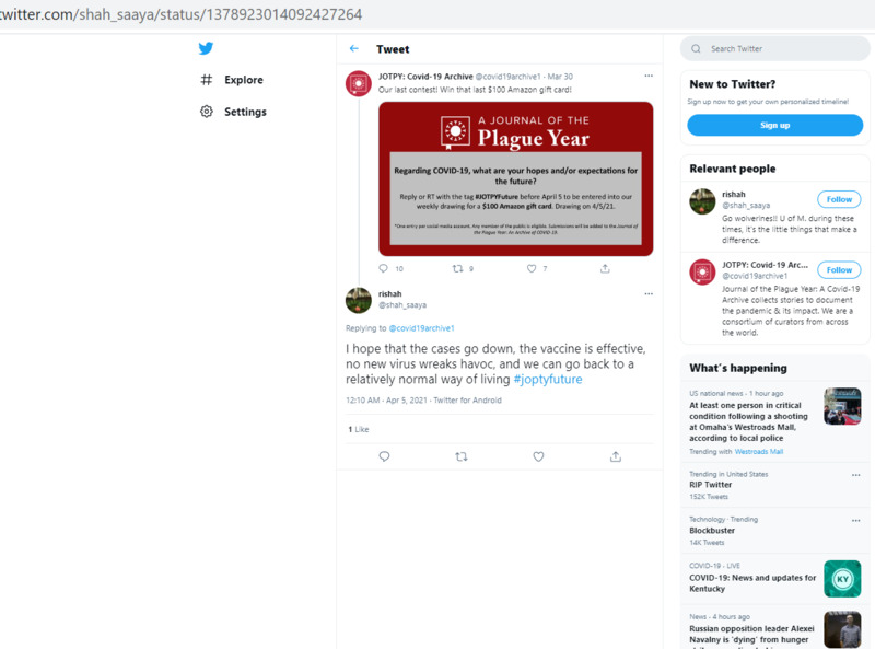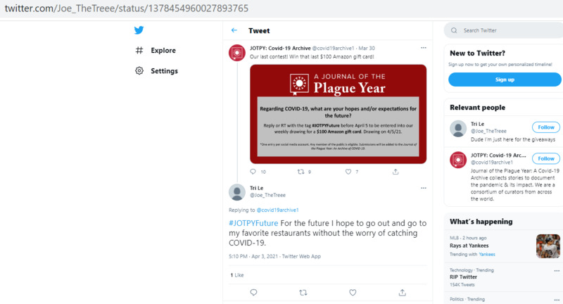#JOTPYFuture For the future I hope to go out and go to my favorite restaurants without the worry of catching COVID-19.