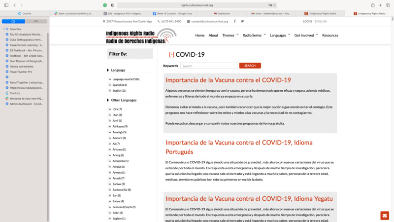 Indigenous Rights Radio has posted interviews with Indigenous Peoples around the globe discussing COVID-19.