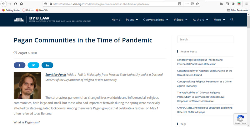 One group that is often overlooked when discussing faith and religion is paganism. Partly, this is because, as the article references, paganism is not uniformly defined like other religious groups and faiths. As a result, it is much more difficult to understand and see how various pagans are reacting to the pandemic. Nonetheless, this article briefly surveys various sects of paganism in many different countries. One common element for many who consider themselves pagan has been celebrating and practicing privately, while also meeting virtually.