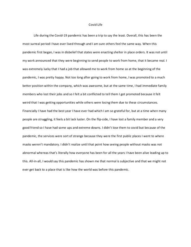 I submitted this as an account for what it is like to have both great things and bad things happen during the pandemic.