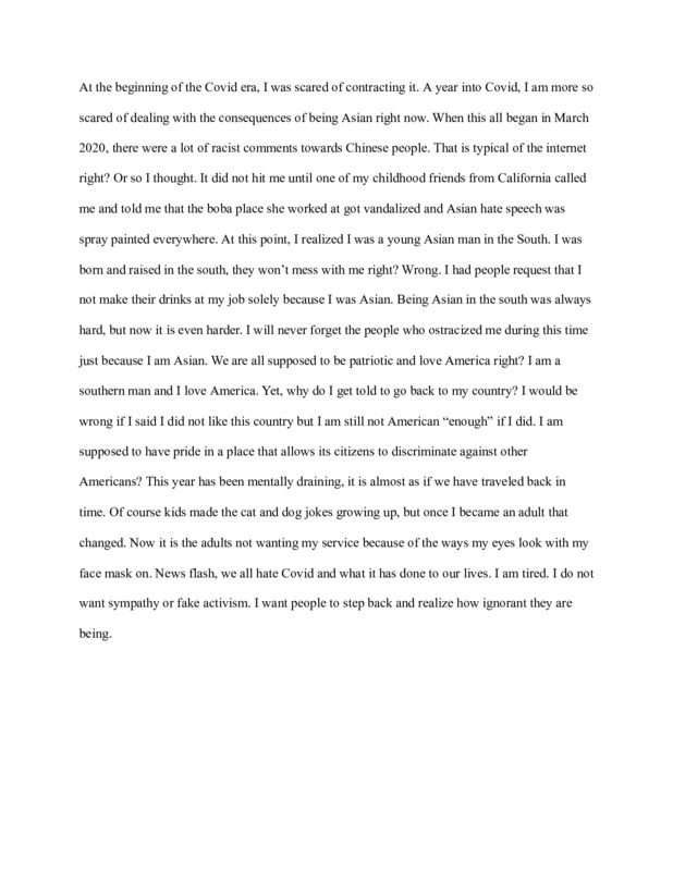 This piece describes the minor hardships I have experienced during Covid as a young man who happens to be Asian.