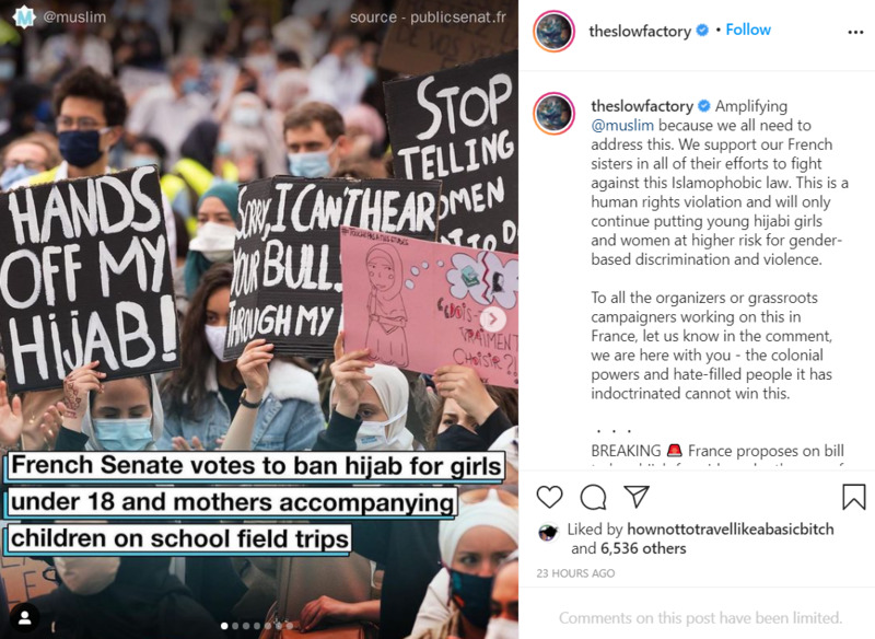 Amplifying @muslim because we all need to address this. We support our French sisters in all of their efforts to fight against this Islamophobic law. This is a human rights violation and will only continue putting young hijabi girls and women at higher risk for gender-based discrimination and violence.
