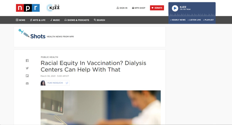 Dialysis patients fall into the high-risk category for COVID-19. Many dialysis patients are also Black or Latino, both have groups that have high COVID-19 rates and low rates of health care access. The Bidan administration has announced plans to have dialysis clinics distribute vaccines to patients, which will help the vaccination rates of the high-risk communities.