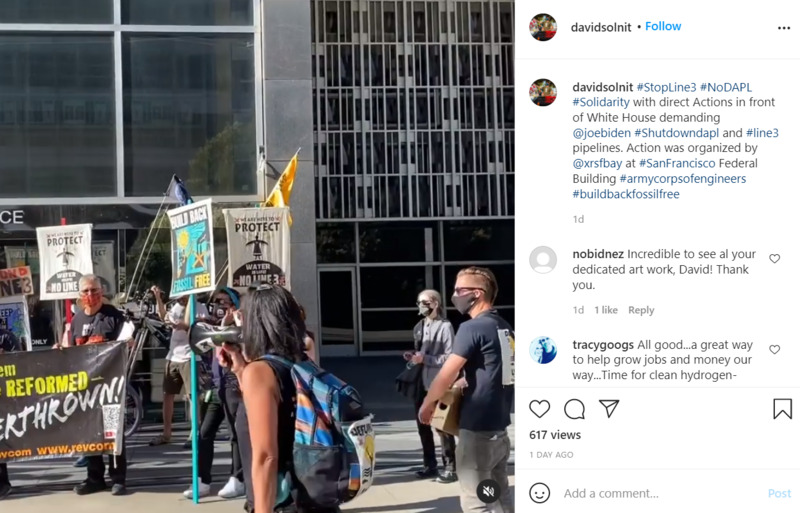 #StopLine3 #NoDAPL #Solidarity with direct Actions in front of White House demanding @joebiden #Shutdowndapl and #line3 pipelines. Action was organized by @xrsfbay at #SanFrancisco Federal Building #armycorpsofengineers #buildbackfossilfree
