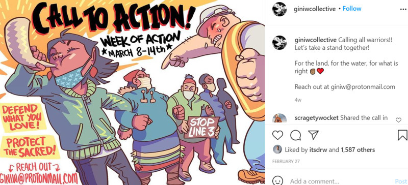 Our relatives from @crgrassrootscollective stopped by the Line 3 White Earth Camp this weekend on their way to bring the fossil fuel snake back to DC and demand @joebiden #BuildBackFossilFree and #shutdowndapl and #stopline3. We stand united in saving our land, sky and water— will you join us on April 1st?