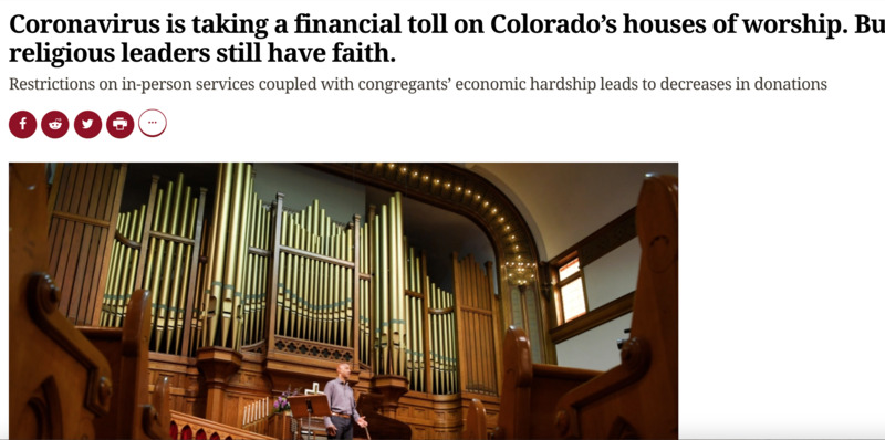 During the pandemic, many places of faith are on the verge of closing their doors permanently. As people lost jobs, giving obviously declined. Because houses of worship rely entirely on giving, this has created a crisis for many churches, mosques, synagogues, and temples. These houses of faith still have bills to pay, they have employees to pay, and the vast majority of these houses of faith contribute significantly to their community. This article speaks to the uphill battle being faced specifically by places of faith in Colorado during the pandemic.