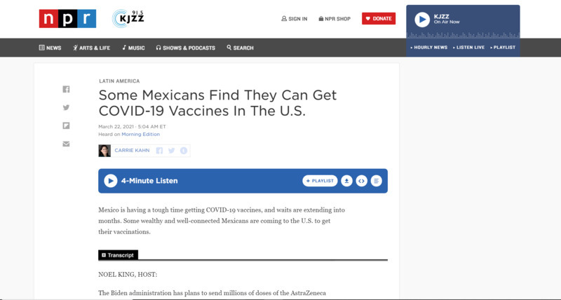 In Mexico, receiving the COVID-19 vaccine is difficult. This has led to some Mexicans going to the United States COVID-19 vaccine. However, those that do this usually have money and/or connections. In some cases, the areas these people go to for vaccines are struggling to receive vaccines, such as the counties near the Texas-Mexico border.