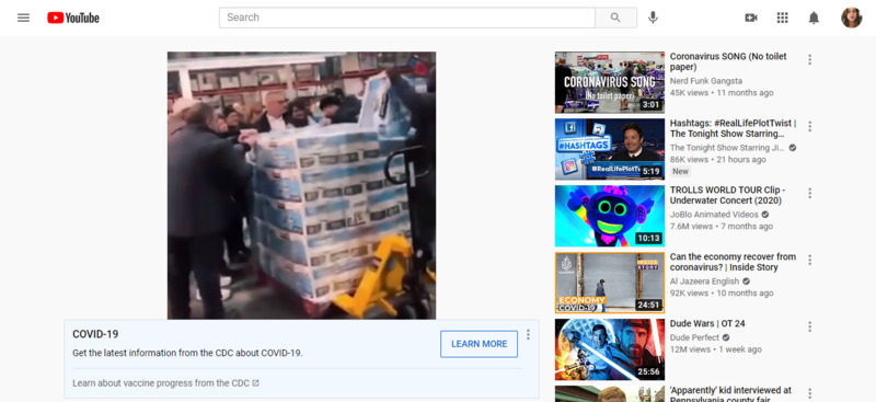 A video meme making fun of the panic buying of toilet paper in march of 2020. Appears to be a Costco. Dubbed with zombie noises from The Walking Dead. I feel its important for videos of these events to be preserved as well as the social/ popular response to events like panic buying -