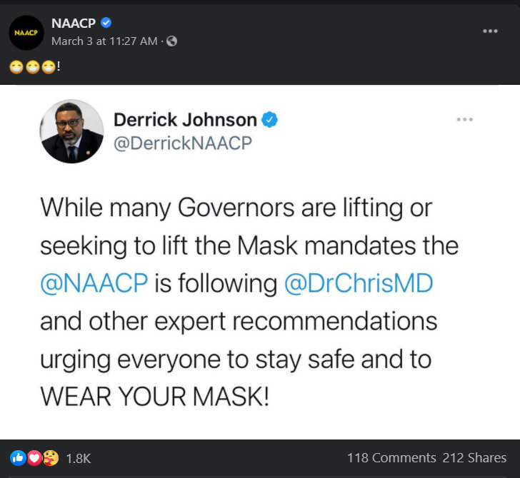 Everyone is so eager to get back to "normal". Everything is reopening, people are feeling safer, and politicians are being reckless. The NAACP and @DrChrisMD is urging people to continue to be safe and wear a mask. People commenting did not seem to think we need to worry anymore, maybe they are right. -