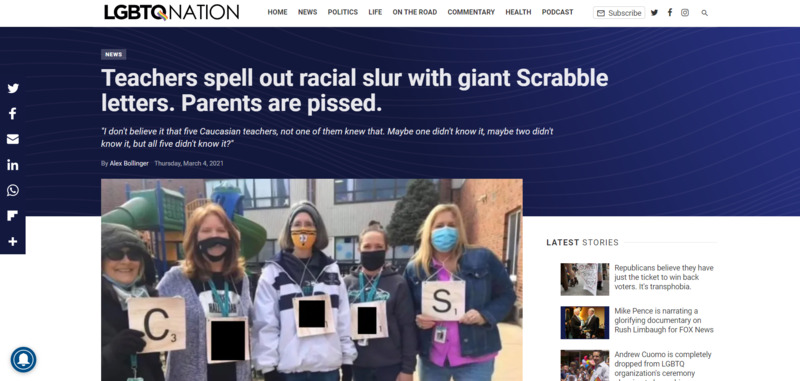 2021-03-04Teachers spell out racial slur with giant Scrabble letters. Parents are pissed.