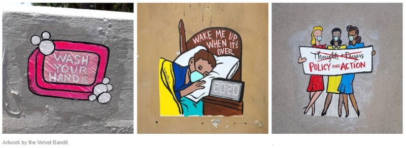 This call for submissions seeks to highlight street art in the Journal of the Plague Year (JOTPY), a Crowdsourced digital archive where anyone can add their experiences and responses to the global pandemic for future generations to witness. Oftentimes, street art is temporary in nature and may be removed, obscured, or destroyed. Help JOTPY recognizes the diversity of street artists and their expressions of the pandemic experience. Street art often reflects individuality, community sentiment, class differences, politics, emotion, and humor. Your contributions to the archive – such as news articles, blog posts, videos, photos, and social media posts of murals, graffiti, paste-ups, stencils, chalk art, and stickers – will provide future generations access to a fleeting moment of art in and on public spaces and places during the pandemic. When submitting a street art item to JOTPY, please include a title for your submission, a description and location of the street art, your name (names can be kept private/anonymous), and #pandemicstreetart. Text stories, image(s), video(s), audio, and PDF files are all accepted file types. If the street art speaks to your experience(s) of the pandemic, please share your thoughts! If you would like to contribute, please share your story/pic/video here and reach out to Monica Ruth at meruth1@asu.edu if you have any questions.
